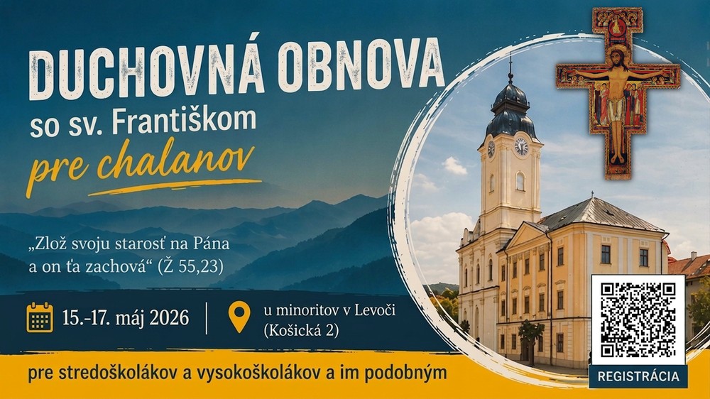 - Aj my, minoriti, pozývame chlapcov stredoškolákov a vysokoškolákov ku nám do levočského kláštora na duchovnú obnovu v termíne od 15. do 17. mája 2026. Prihlásiť sa môžete buď osobne alebo podľa inštrukcií na plagáte, ktorý nájdete na výveske.